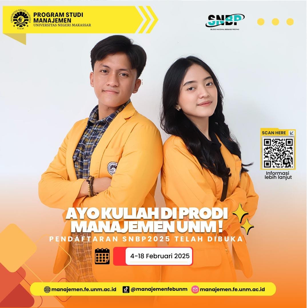 Jangan lewatkan kesempatan untuk mendaftar di Program Studi Manajemen Fakultas Ekonomi dan Bisnis Universitas Negeri Makassar melalui jalur SNBP 2025. Persiapkan diri Anda dengan baik dan semoga sukses dalam proses pendaftaran!