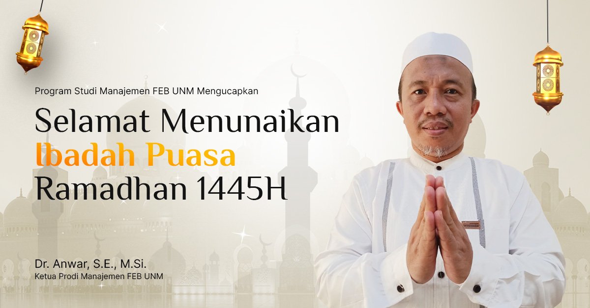 Dengan penuh kebahagiaan dan kerendahan hati, Program Studi Manajemen, Fakultas Ekonomi dan Bisnis, Universitas Negeri Makassar mengucapkan Selamat Menunaikan Ibadah Puasa di Bulan Suci Ramadhan 1446 H/2025 M kepada seluruh keluarga besar Prodi Manajemen FEB UNM. Bulan Ramadhan adalah momen yang penuh berkah, di mana kita diberikan kesempatan untuk memperkuat hubungan spiritual dengan Allah SWT, meningkatkan ketakwaan, serta mempererat ukhuwah dan kepedulian sosial di tengah masyarakat.