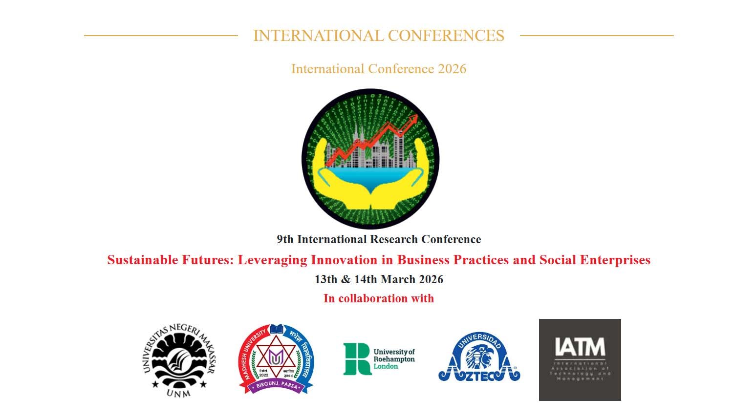 Keikutsertaan delegasi dari Prodi Manajemen UNM menjadi semakin istimewa karena Universitas Negeri Makassar juga tercatat sebagai salah satu institusi kolaborator internasional dalam penyelenggaraan konferensi tersebut. Dalam daftar kolaborator, UNM berdampingan dengan sejumlah perguruan tinggi dari berbagai negara, seperti Madhesh University, University of Roehampton, dan Azteca University. Hal ini menunjukkan pengakuan terhadap kapasitas akademik UNM dalam jejaring kerja sama internasional.