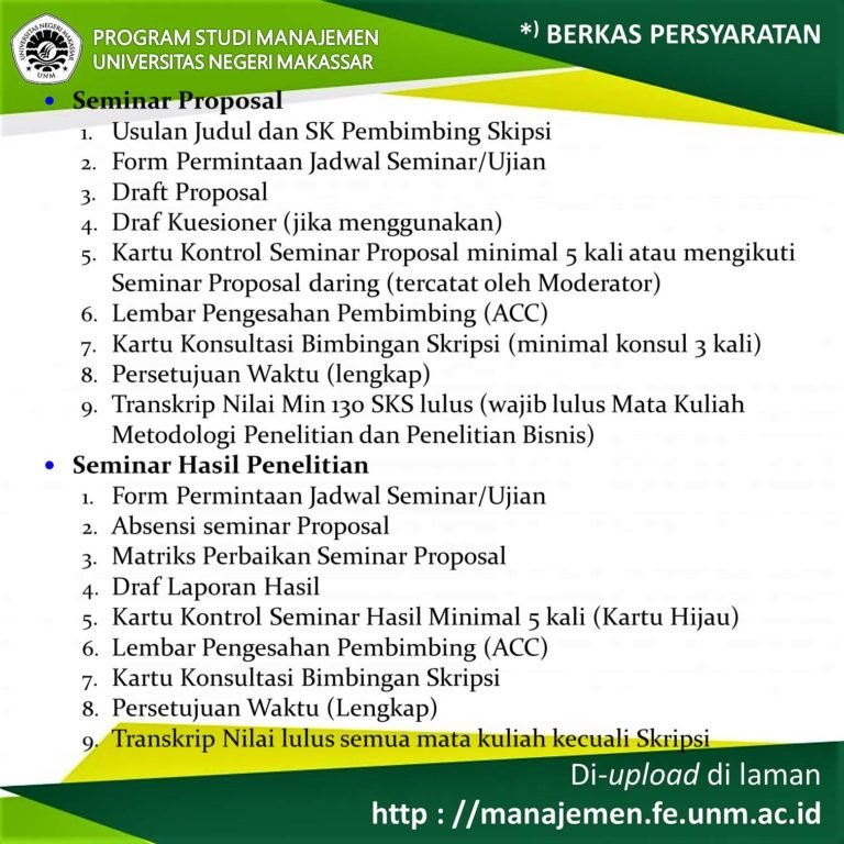 - Link Pendaftaran Seminar Hasil Penelitian – download form validasi berkas pendaftaran (print/cetak)